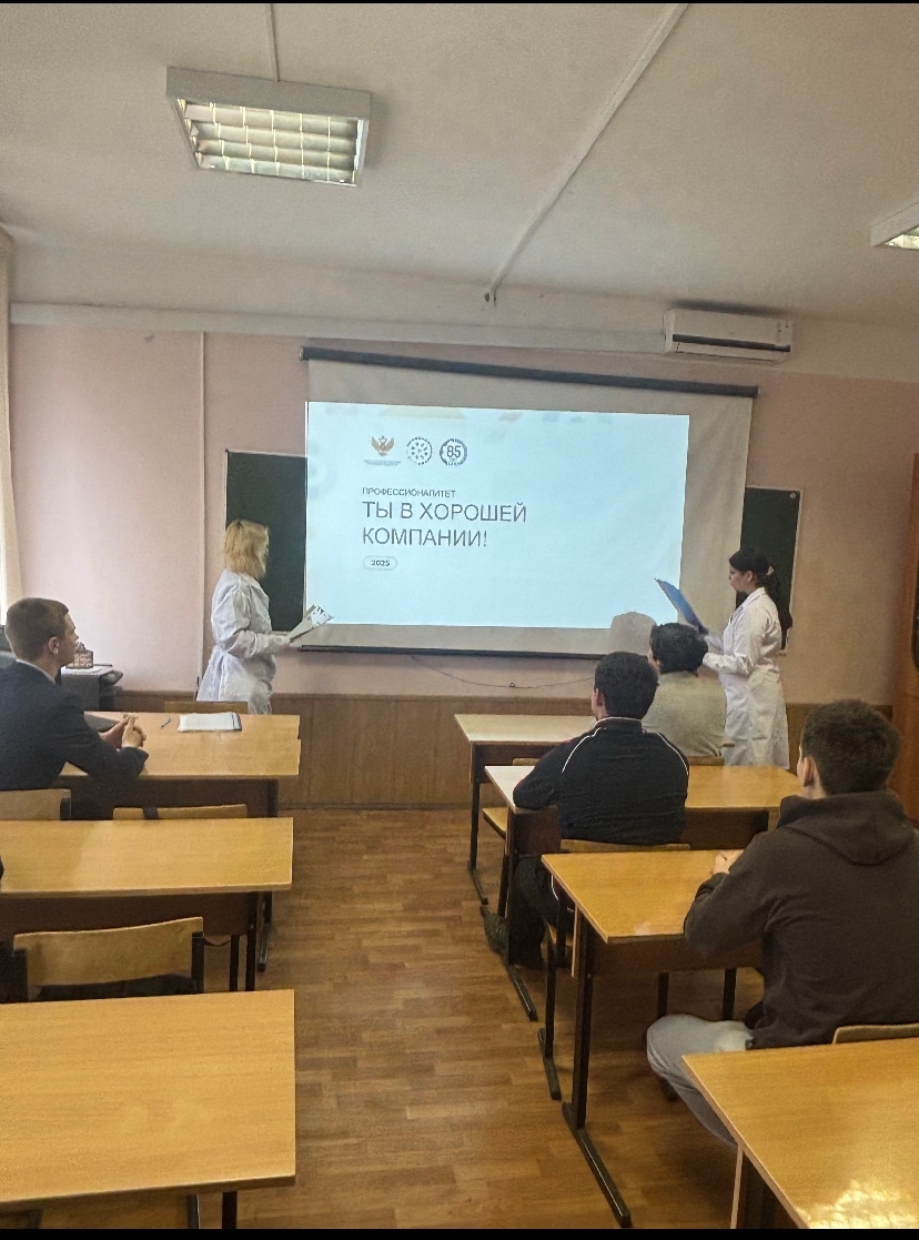 В рамках Дня открытых дверей амбассадорами Профессионалитета – студентами специальности «Технология машиностроения» был проведен классный час «ПРОФЕССИОНАЛИТЕТ: ТЫ В ХОРОШЕЙ КОМПАНИИ!». Обучающихся 8-11 классов школ города и района, педагогических работников и родителей ознакомили с актуальным состоянием развития среднего профессионального образования; рассказали о перспективах обучения в Осташковском колледже, реализующем образовательные программы федерального проекта «Профессионалитет», который направлен на подготовку квалифицированных кадров и является частью национального проекта «Молодежь и дети»; расширили кругозор школьников и понимание востребованности рабочих профессий и специальностей на рынке труда; перечислили перспективы и преимущества при обучении по образовательным программам федерального проекта «Профессионалитет»; поделись личным опытом, продемонстрировали достижения и результаты обучения. Были продемонстрированы видеоролики о федеральном проекте «Профессионалитет», проекте «Амбассадоры Профессионалитета» и предприятиях-партнерах, о деятельности колледжа в рамках федерального проекта «Профессионалитет». Поступление в колледж — это прекрасная возможность не только раскрыть свои таланты, но и реализовать свои мечты. Рабочие профессии становятся все более востребованными. Приходите к нам! Мы хорошему научим!