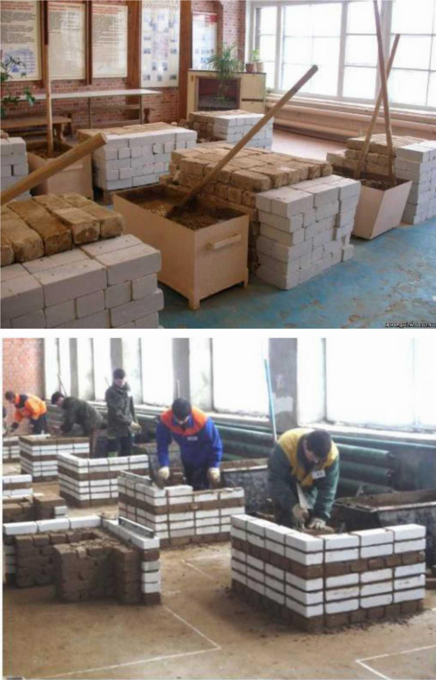 Устраивает горизонтальную гидроизоляцию фундамента рулонными материалами. Заделывает кирпичем и бетоном борозды, гнезда и отверстия. Пробивает проемы в кирпичных и бетонных стенах. Выполняет монтаж в каменных зданиях железобетонных перемычек над оконными и дверными проемами и нишами.
